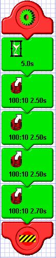 · You could have also reduced the first Tile to be 2.5 seconds rather than 5 seconds (to make it a quarter circle) and copy and pasted it 4 times (4 quarters equals 1 whole circle!) Why do that if there is more work in the copy and pasting? Well, you would then be able to ‘fine-tune’ how long the Scribbler goes in the circle. Since you can never go more than 5 seconds, you would not be able to adjust the time upward with the first method. However, you could move one of the 2.5 seconds Tiles to 2.7 to make sure it is exactly where you want the Scribbler to stop.